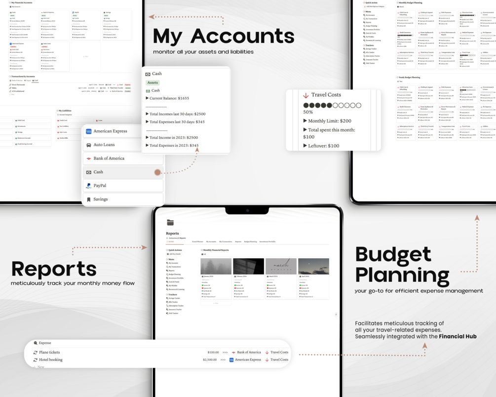 Are you an avid traveler looking to organize your adventures and finances effortlessly? Look no further than Travel and Finance Planner Notion Template.