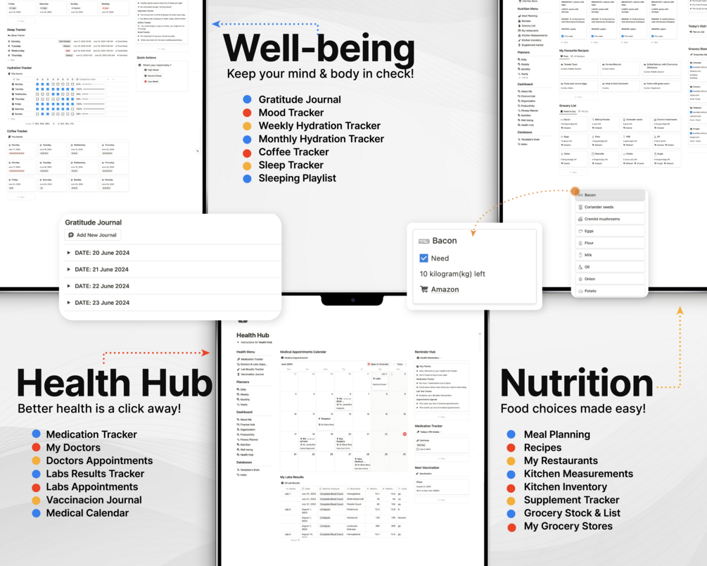 Health is a multifaceted aspect of our lives, demanding meticulous attention and proactive management. The Health Hub in the Second Planner Notion Template is expertly designed to be your comprehensive companion in this endeavor. This hub brings together crucial elements of your health journey, ensuring you have a well-rounded view and control over your medical narrative.