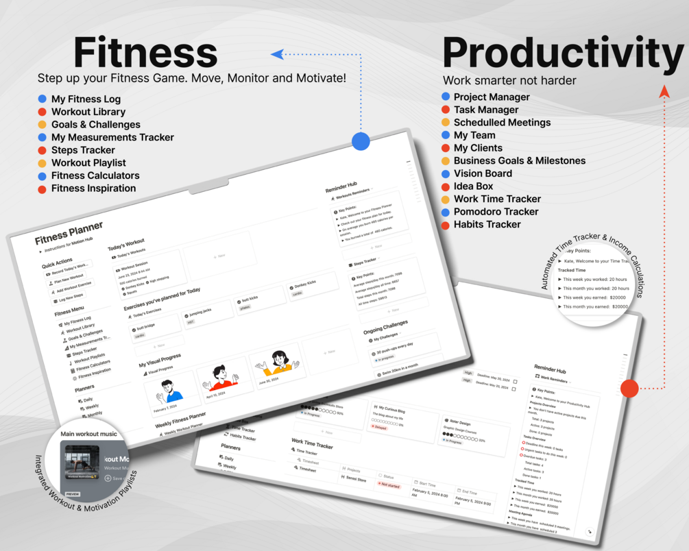 ▪️ Motion Hub – your holistic gateway to physical wellness and fitness within the Second Brain Notion Template. In today's world, where both mental and physical well-being are paramount, the Motion Hub serves as an integrated platform to cater to your fitness aspirations. Whether you're a seasoned athlete or just embarking on your wellness journey, this hub ensures every stride you take is documented, every goal is tracked, and every sweat-drop counts.