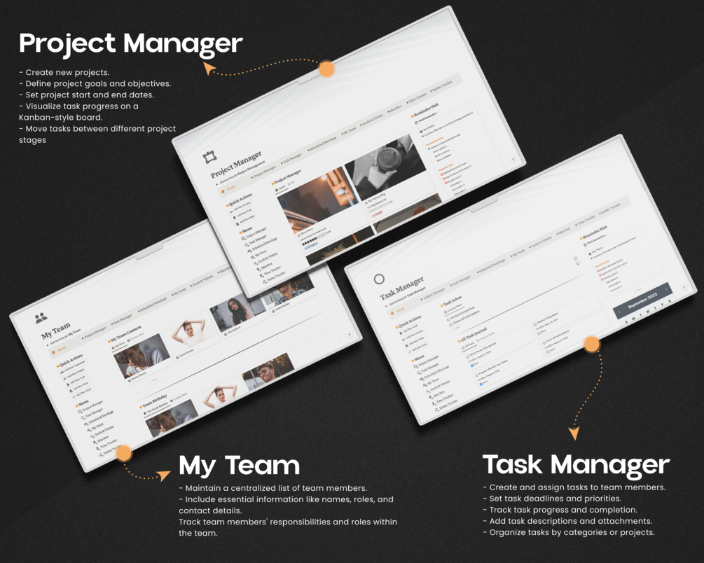 Accurate time tracking and financial management are crucial for project success. The Project Management Notion Template includes features that allow you to track the time spent on each task or project and monitor your financial progress. Stay on budget, ensure profitability, and make informed decisions based on real-time data. Experience greater control over your projects and financial well-being.