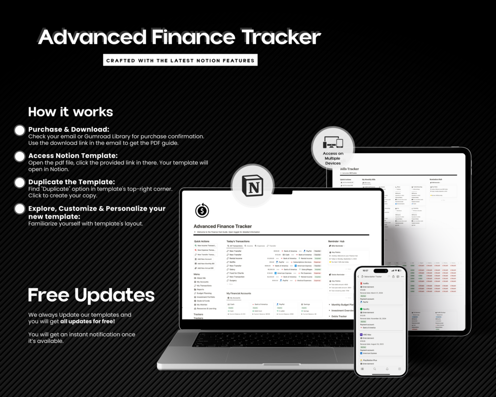 Advanced Finance Tracker Notion Template : Master Your Money with Elite Financial Organization!