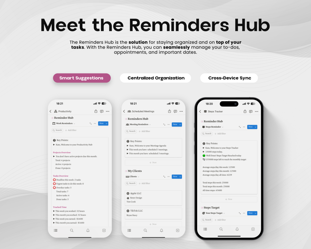 ▪️ Reminders Hub: The cornerstone of this Notion Template! Never overlook vital details again. Set reminders for meetings, bills, birthdays, and other significant life events. Stay connected to every crucial aspect of your journey.