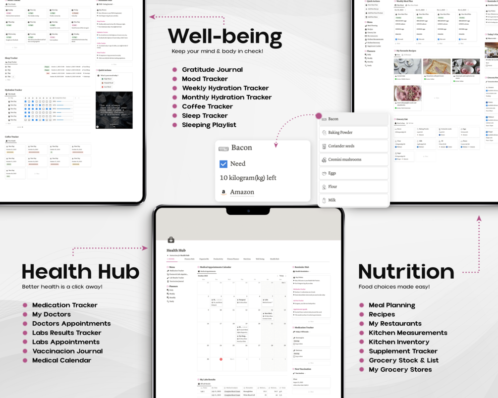 ▪️ Health Hub: Keep your health in check with this dedicated section. Monitor appointments, medications, and vital health information.