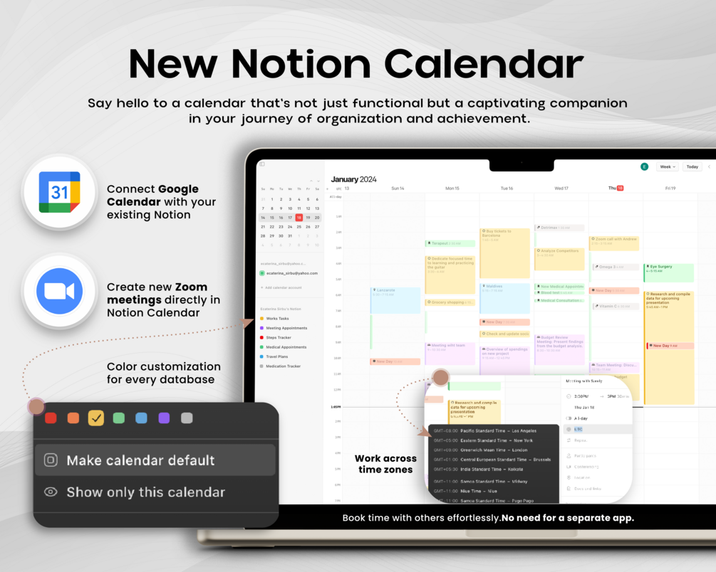 The heart of this Notion Template! Never forget a thing – reminders for meetings, bills, birthdays, and all the good stuff. Stay connected to every part of your journey.