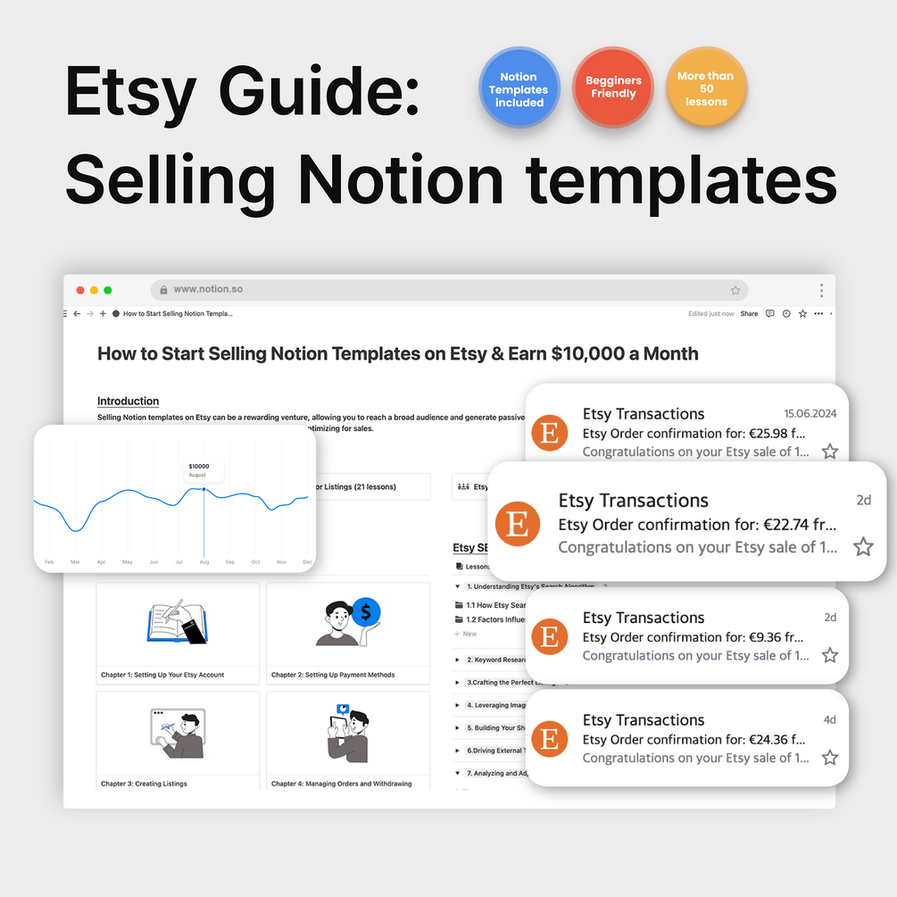 Unlock the secrets to a successful Etsy business with our detailed guide, How to Start Selling Notion Templates on Etsy and Earn $10,000/Month. Whether you're just starting out or aiming to boost your current shop, this guide provides actionable insights and proven strategies to turn your creativity into a profitable online business.